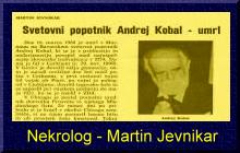Pokojni Andrej Kobal je imel iskrene prijatelje v Gorici. Med njimi sta bila cerkljanska rojaka Viktor Prašnikar (Cemprietau Uiktor) in Rudi Mlakar (Šaunau Rudi). Štirje od teh prijateljev so se pogrebne maše udeležili: Mario Soban kot šofer, Mirjam Obljubek namesto pokojnega Viktorja, Rudi Mlakar in eden njegovih najbližjih Zdenko Kuštrin iz Nove Gorice. Bili so edini zastopniki naše Primorske, ki ji je pokojnik v tujini takole zapel: