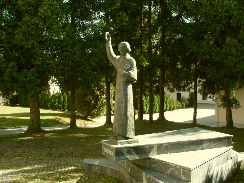 Baragov spomenik pred cerkvijo Marijnega Vnebovzetja v Trebnjem.